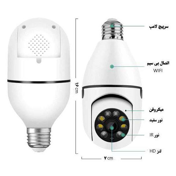 این مدل دوربین با برق 220 ولت کار می کند که فقط کافیه به سرپیچ معمولی لامپ متصل کنید تا دوربین لامپی برق خود را از سرپیچ لامپ دریافت کند و روشن شود.